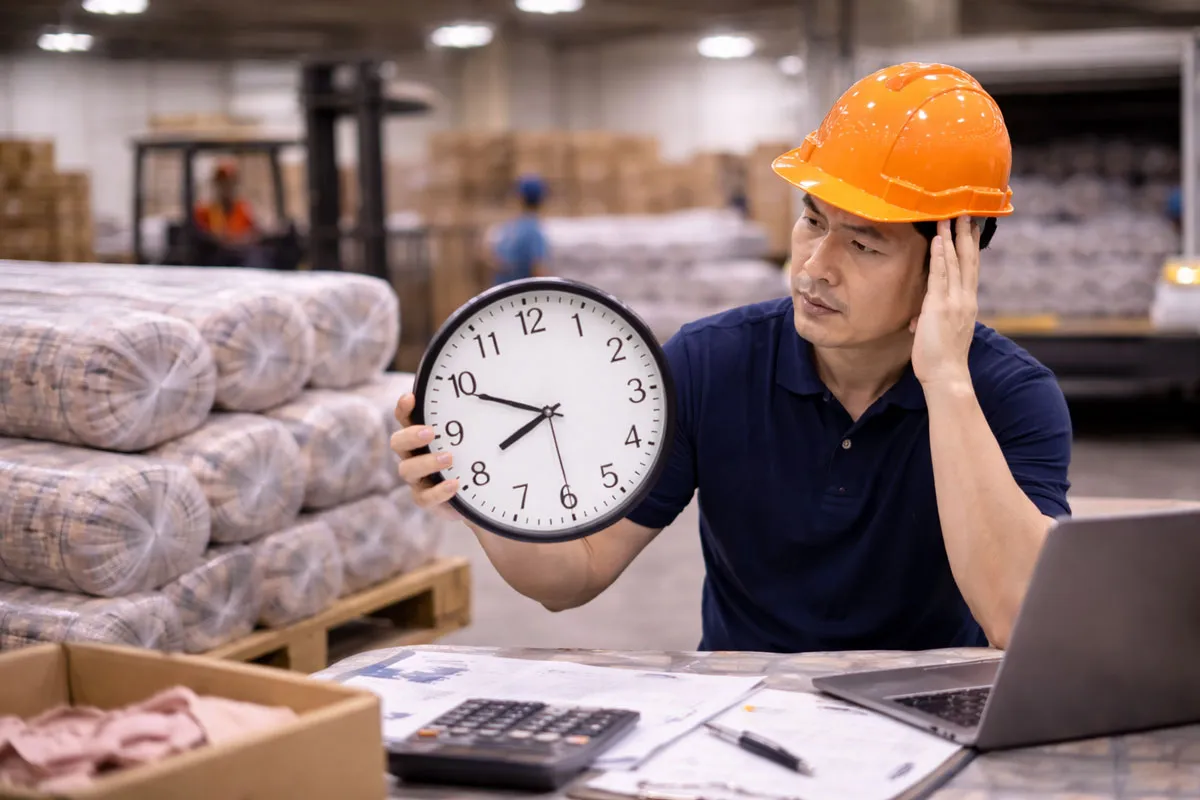 Nhiều xưởng may thường tính toán lịch sản xuất dựa trên thời gian dự kiến vải về kho, nhưng lại bỏ qua các yếu tố rủi ro trong quá trình vận chuyển như ùn tắc, thời tiết, kiểm hàng chậm hoặc phát sinh đơn gấp từ các khách khác. Khi vải về trễ chỉ 1–2 ngày, toàn bộ kế hoạch sản xuất có thể bị đảo lộn.