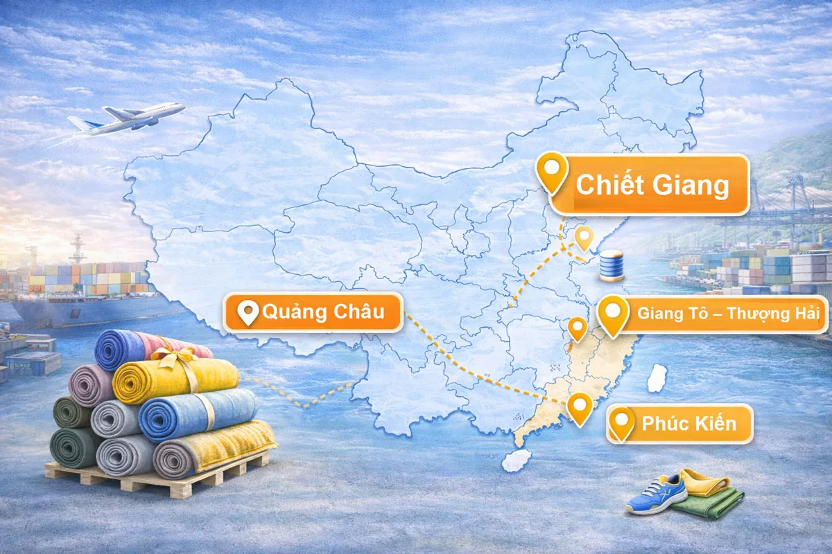 - Giang Tô – Thượng Hải: thế mạnh vải cao cấp, vải kỹ thuật, phục vụ xuất khẩu và đơn hàng yêu cầu cao.